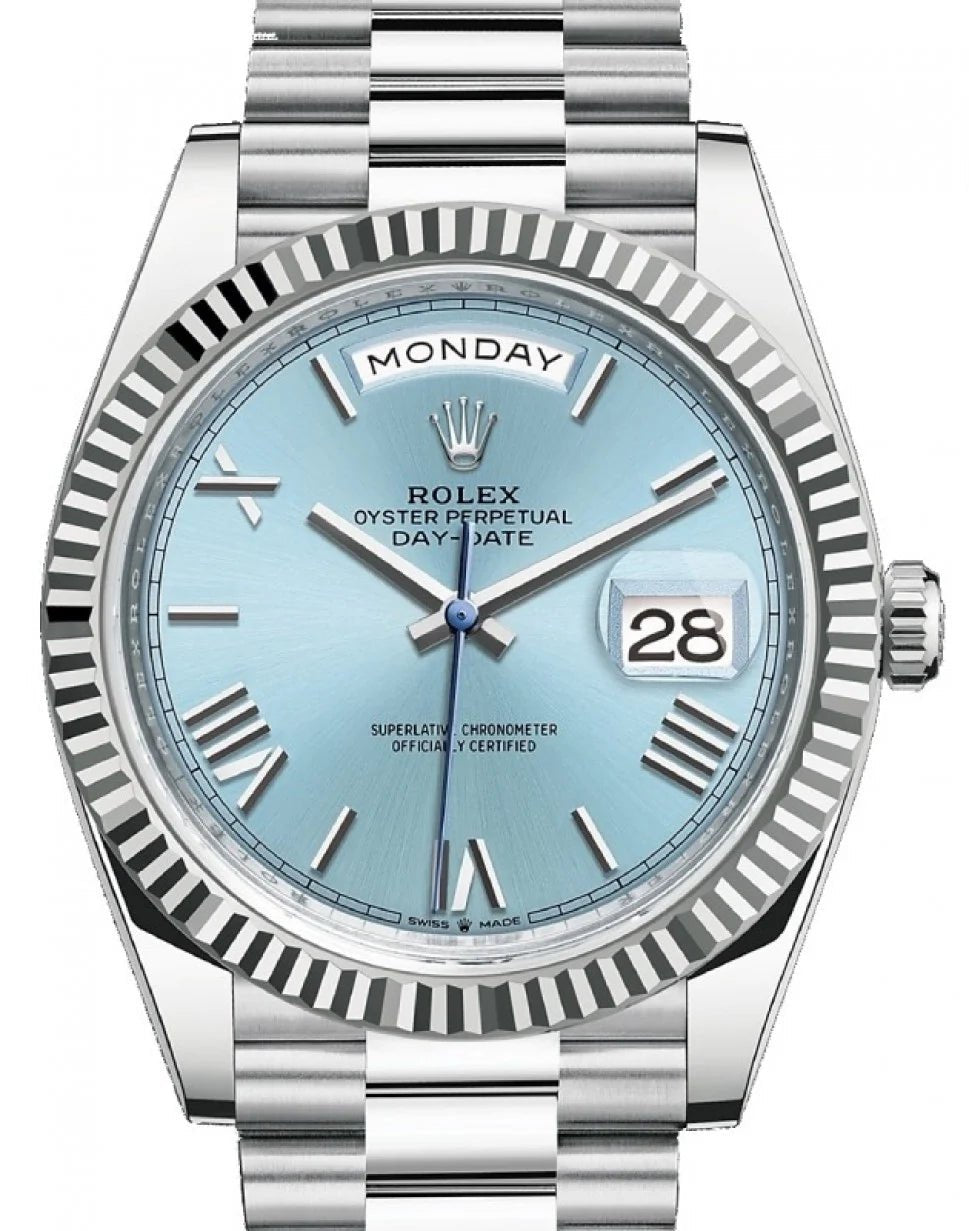 Rolex Day-Date 40 Platinum Day-Date 40 Watch - Fluted Bezel - Ice Blue Roman Dial President Bracelet 228236