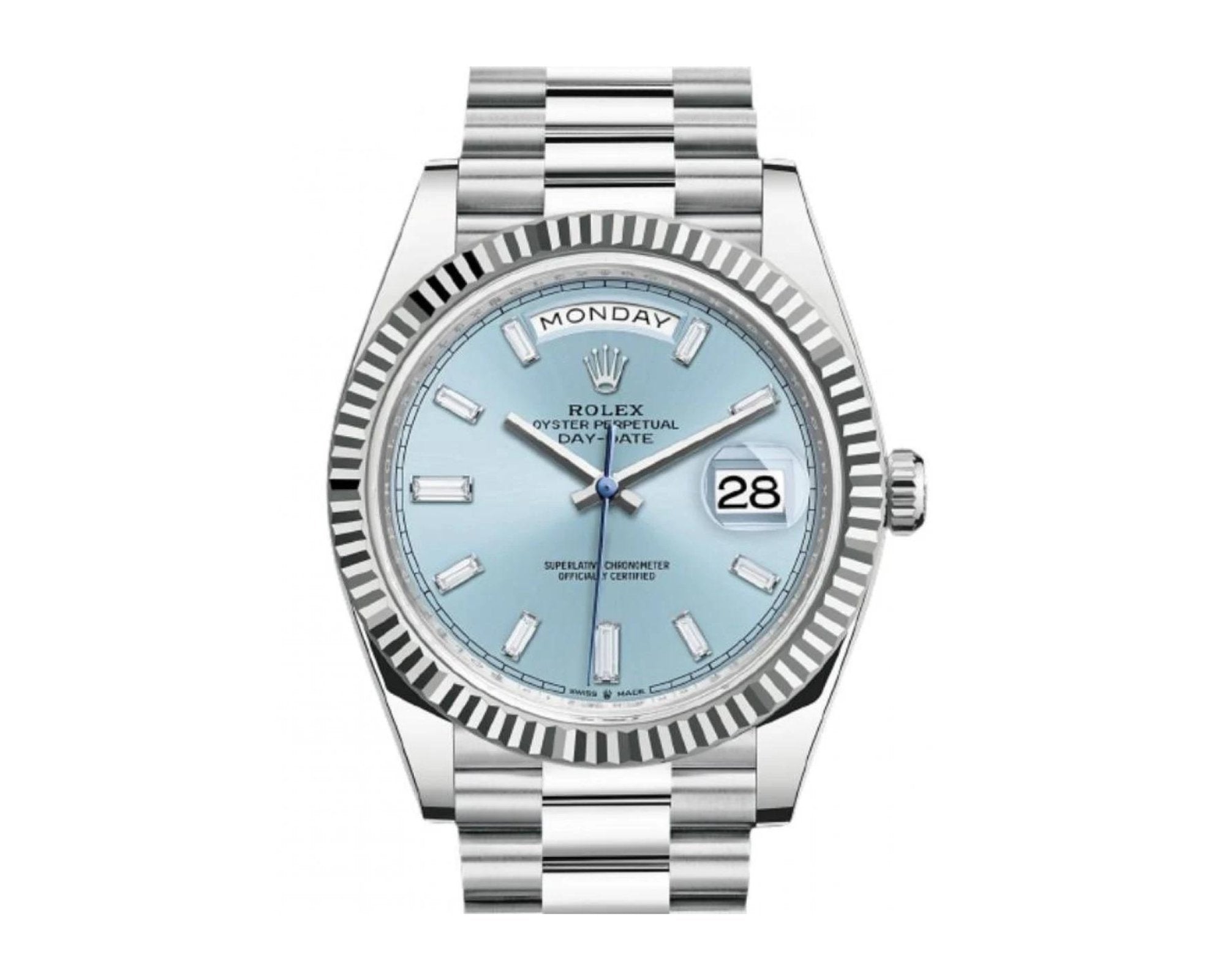 Rolex Day-Date 40 Platinum Day-Date 40 Watch - Fluted Bezel - Ice Blue Baguette Dial 228236