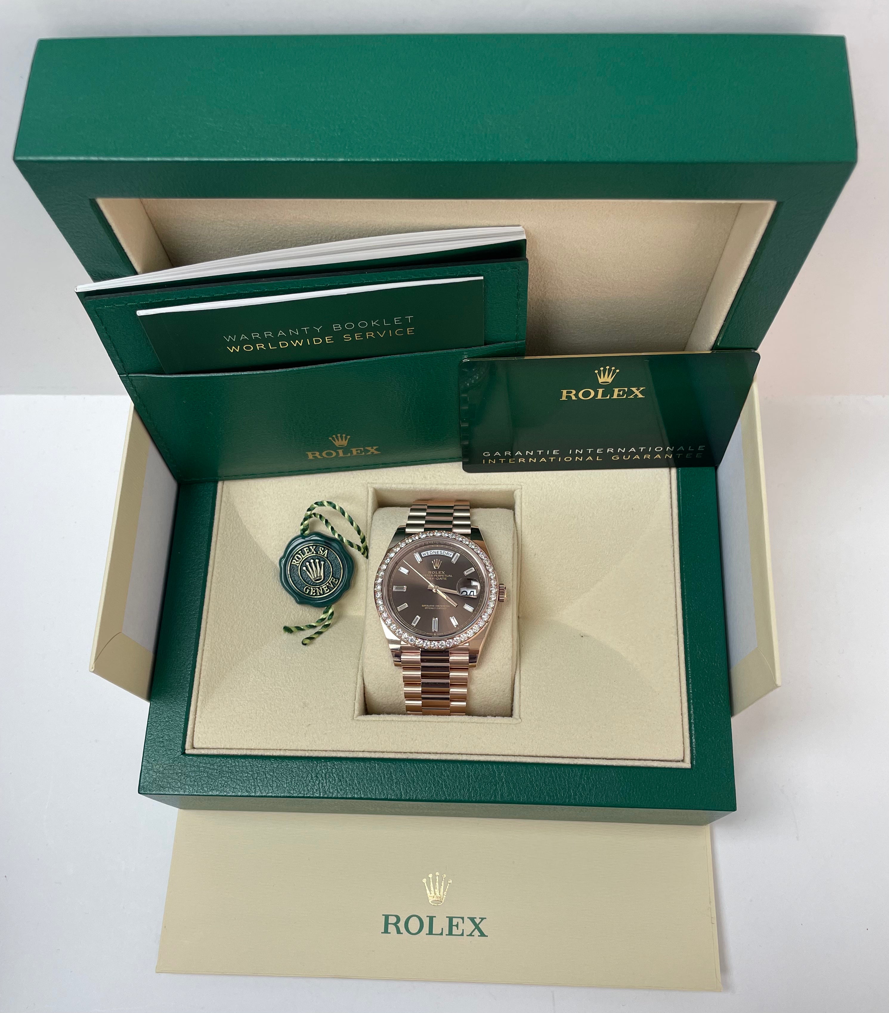 Rolex Day-Date 40 Rose Gold Day-Date 40 Watch - Fluted Bezel - Chocolate Baguette Diamond Dial - 228235