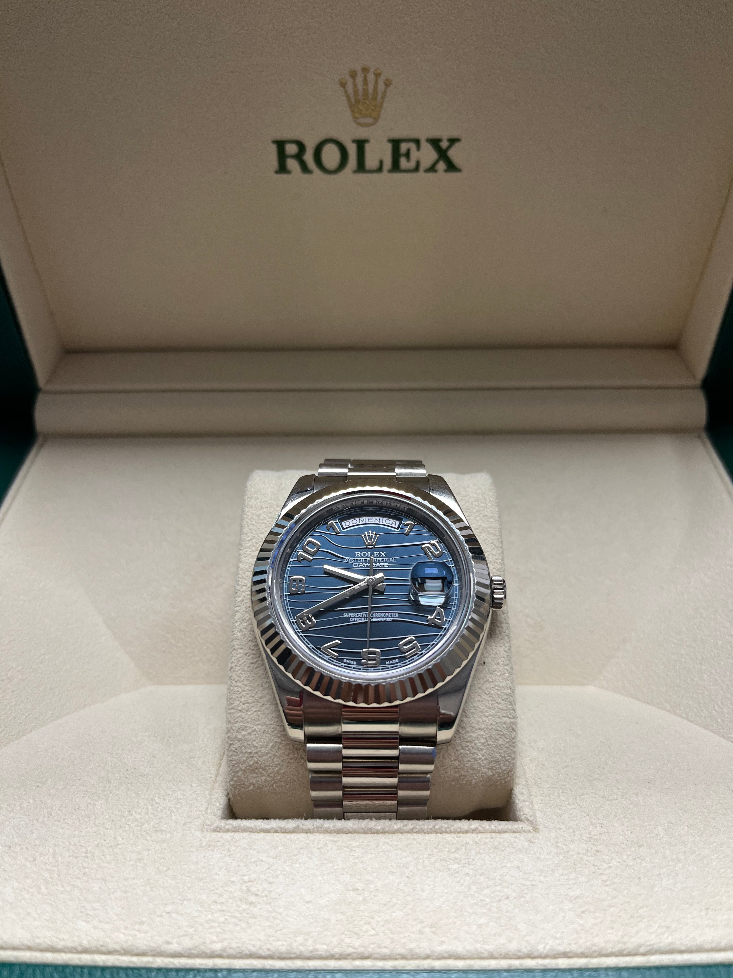 Rolex Day-Date II 18kt White Gold Rolex President Blue Wave Dial Watch (Ref 218239BLWAP)
