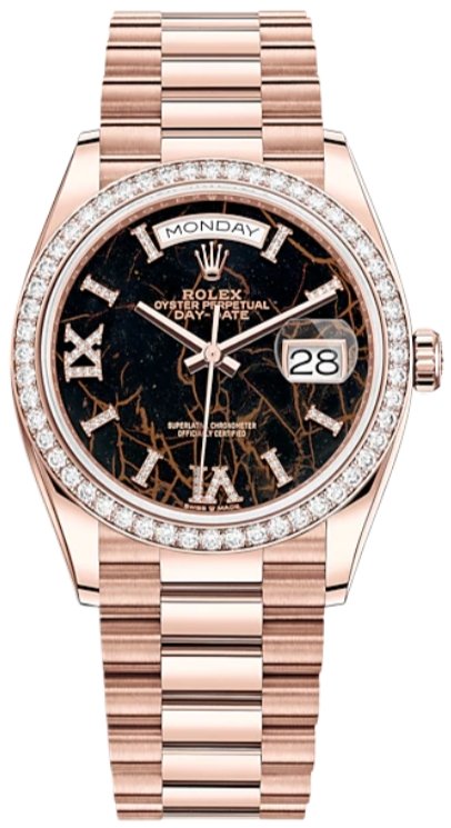 Rolex Day-Date 36 Rose Gold Diamond Bezel Eisenkiesel Diamond Dial (128345RBR)