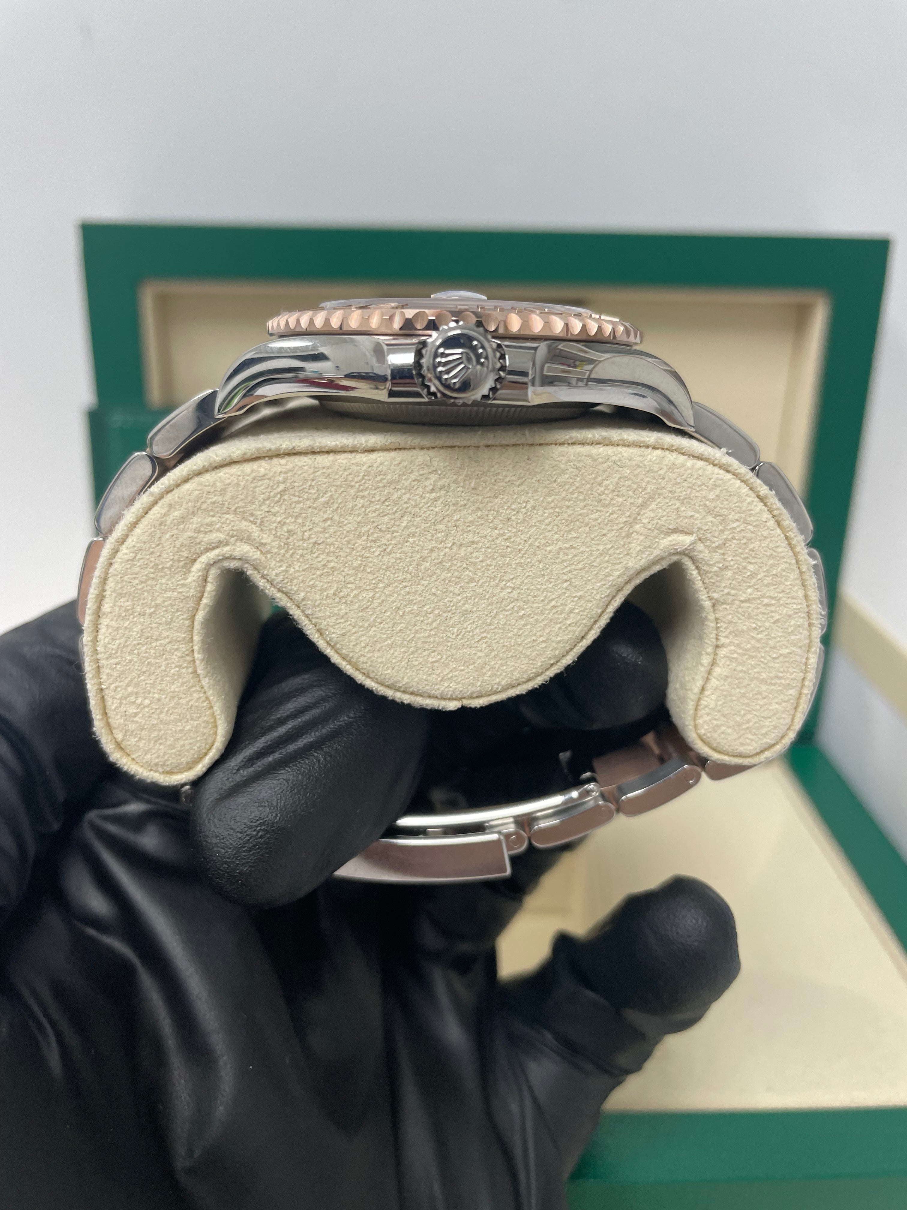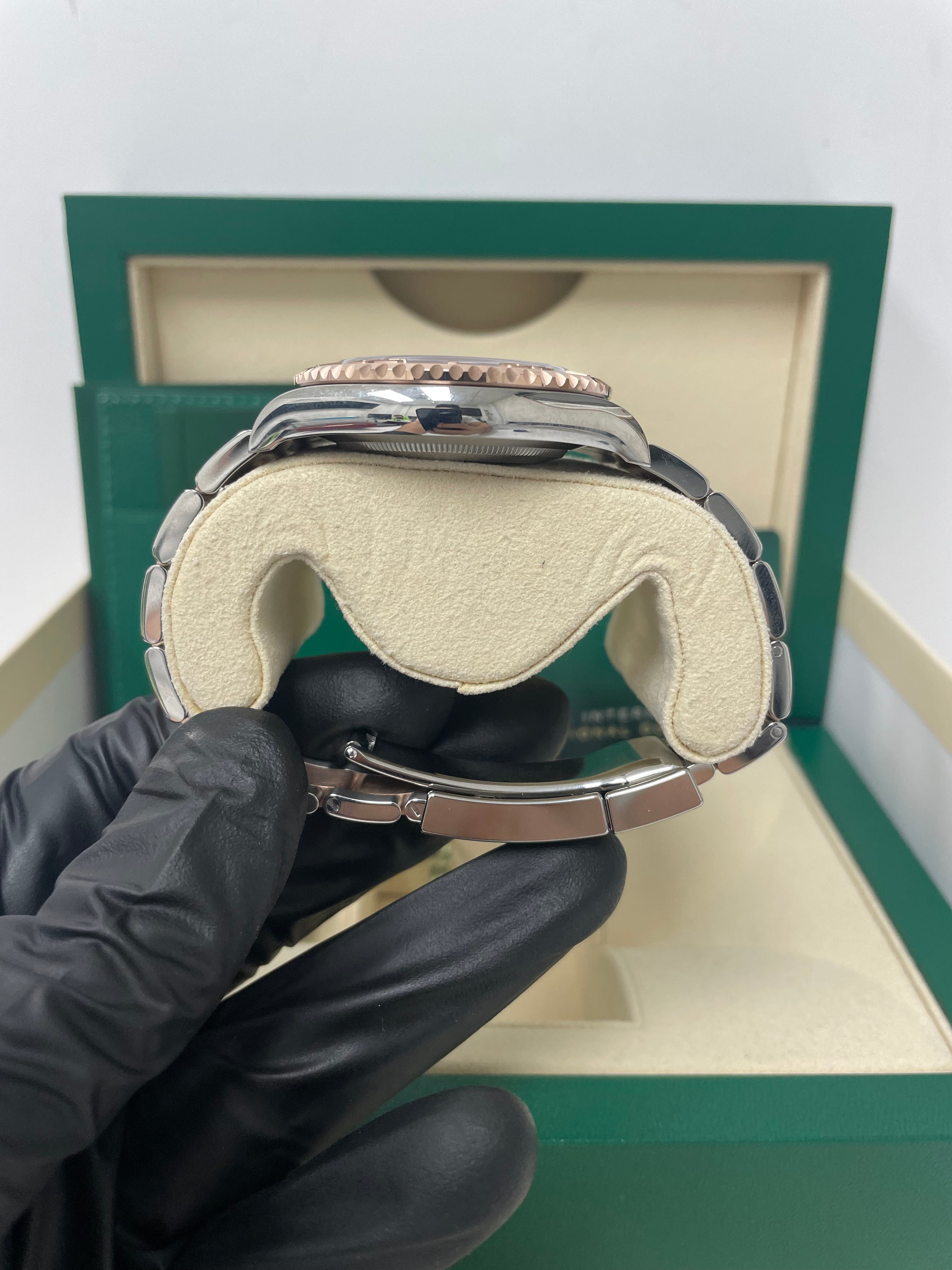 40mm Everose Rolesor case comprised of a 904L steel monobloc middle case, screw-down steel back, screw-down Everose gold crown with triplock double waterproofness system, bidirectional rotatable 18K Everose gold bezel with polished raised numerals and graduations, scratch-resistant sapphire crystal with cyclops lens over the date and double anti-reflective coating, black dial, pink gold applied hour markers with Chromalight blue luminescence, Rolex calibre 3135 automatic movement, approximately 48 hours of power reserve, Everose Rolesor Oyster bracelet comprised of a combination of 904L steel and 18K Everose gold in flat three-piece links, Oysterlock folding safety buckle with Easylink 5mm comfort extension link. Waterproof to 100 meters. Introduced at Baselworld 2016.